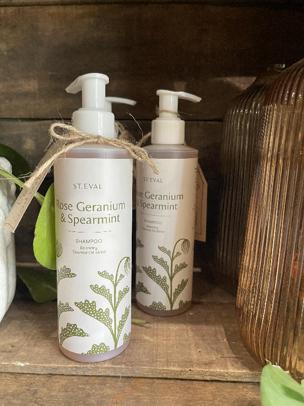 A luxurious shampoo from St. Eval blending the floral sweetness of rose and geranium with a refreshing spearmint lift. A salon-worthy treat made with quality botanical ingredients.